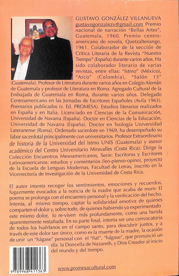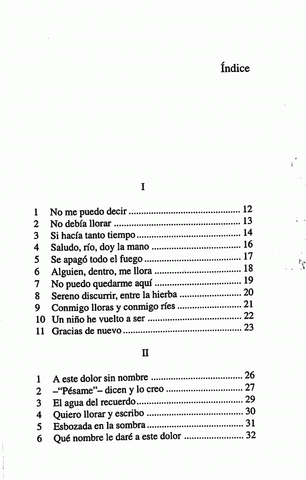 De acuerdo con el resumen, el autor en este libro intenta recoger los sentimientos, emociones y recuerdos, fugazmente evocados a la noticia de la madre que acaba de morir. El poema se prolonga con el encuentro personal y la verificación del hecho. Intenta al mismo tiempo, captar la solidaridad emotiva de quienes comparten el dolor y , sobre la todo, de quienes habiendo ya experimentado este mismo dolor lo re-viven más profundamente.