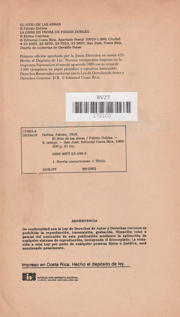 Biblioteca Virginia Zuñiga Tristán | 868 D-9s (Browse shelf(Opens below)) | Available | 1721CO |