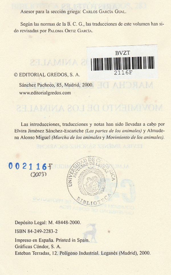 | 100 A-36mr Moral: La gran moral. Moral a Eudemo | 100 A-36mr Moral: La gran moral. Moral a Eudemo | 100 A-36p Poética | 100 A-36pa Partes de los animales. Marcha de los animales. Movimiento de los animales | 100 A-36po La política | 100 A-36po La política | 100 A-36po La política |