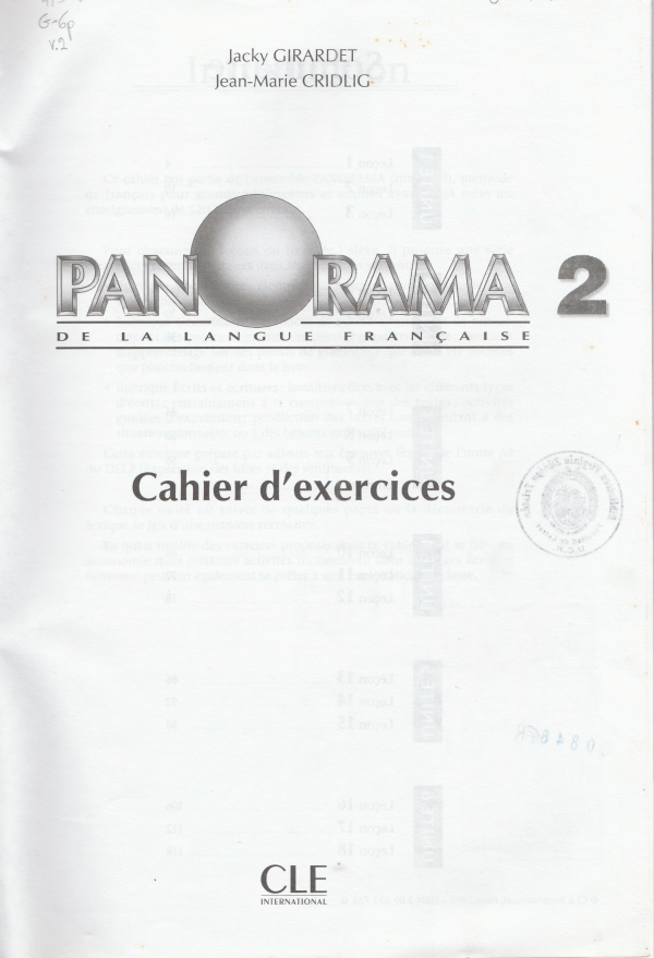 Panorama 2 de la Langue Francaise : Cahier d´exercices
